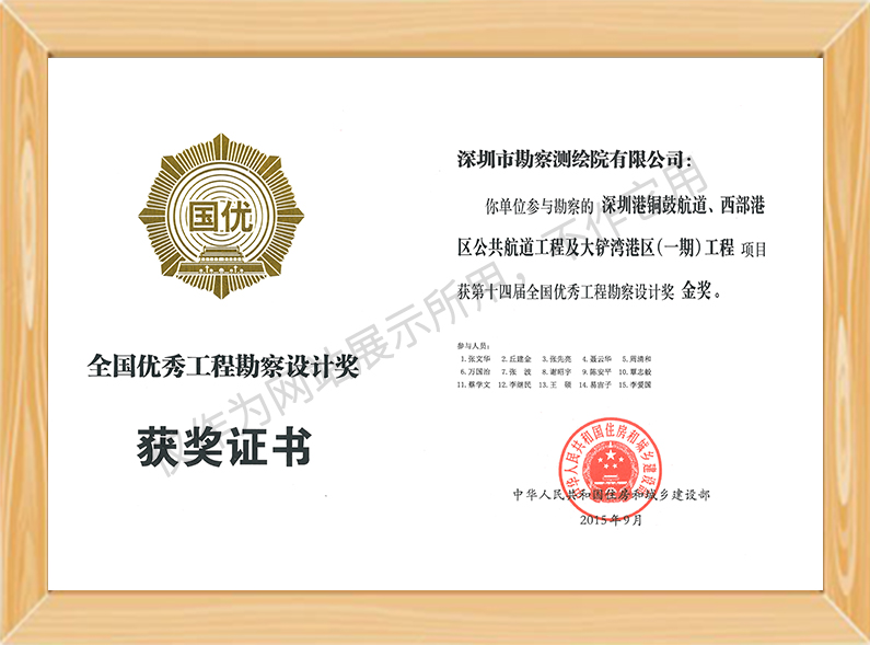 深圳港銅鼓航道、西部港區(qū)公共航道及大鏟灣港區(qū)(一期)工程-全國優(yōu)秀工程勘察設(shè)計獎金獎