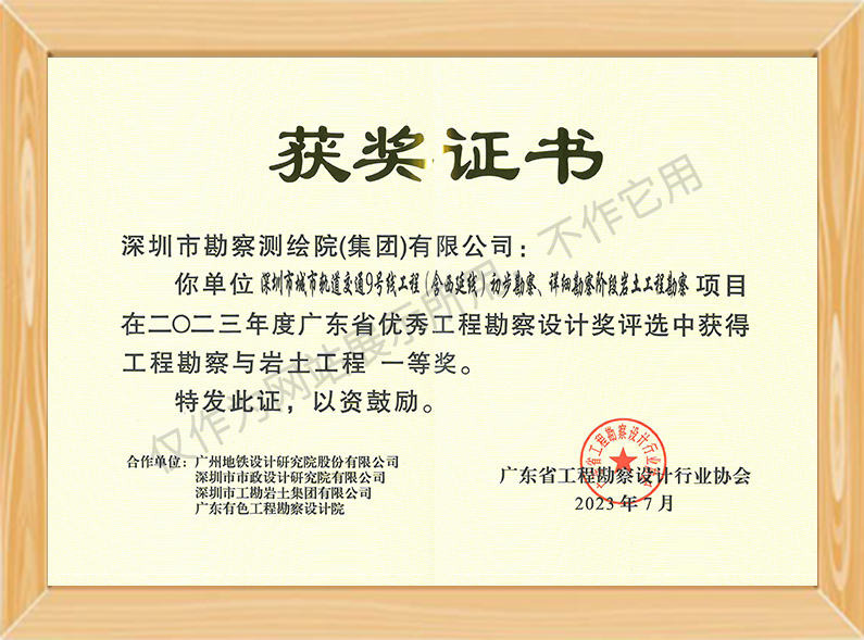 深圳市城市軌道交通9號線工程(含西延線)初步勘察、詳細勘察階段巖土工程勘察-廣東省優(yōu)秀工程勘察設(shè)計獎一等獎