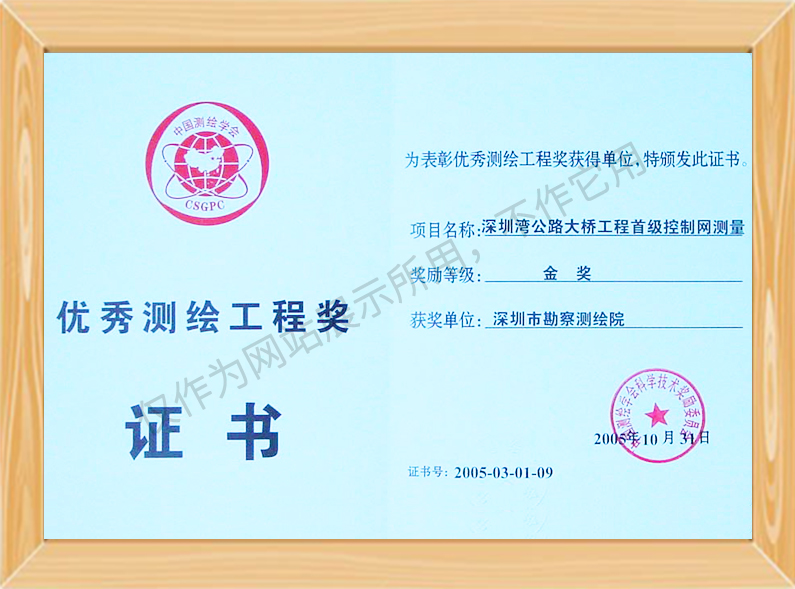 2005年優(yōu)秀測繪工程獎-金獎-深圳灣公路大橋首級控制網(wǎng)測量