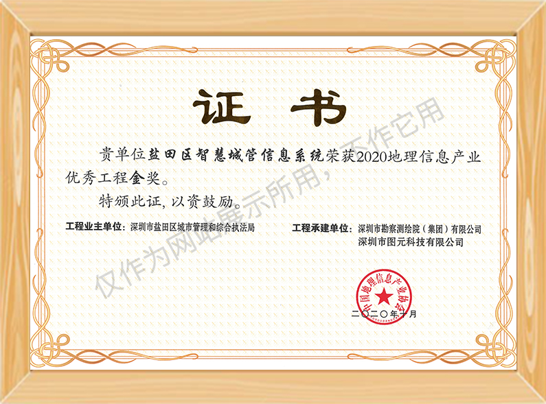 2020年地理信息產(chǎn)業(yè)優(yōu)秀工程-金獎-鹽田區(qū)智慧城管系統(tǒng)